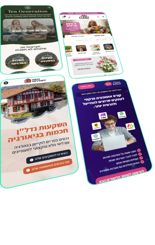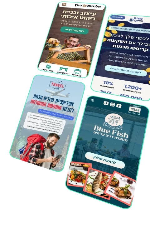 קבלו אתר עסק בהתאמה אישית, עם דגש על מהירות גלישה, התאמה למובייל וחווית משתמש גבוהה, שהופכת גולשים באתר ללקוחות משלמים.