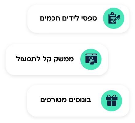 טפסים לאיסוף פניות של לקוחות פוטנציאליים עם חיבור אוטומטי למייל ואזור מיוחד באתר עם כל המידע הנחוץ על מנת להבטיח מענה מהיר ומקצועי.